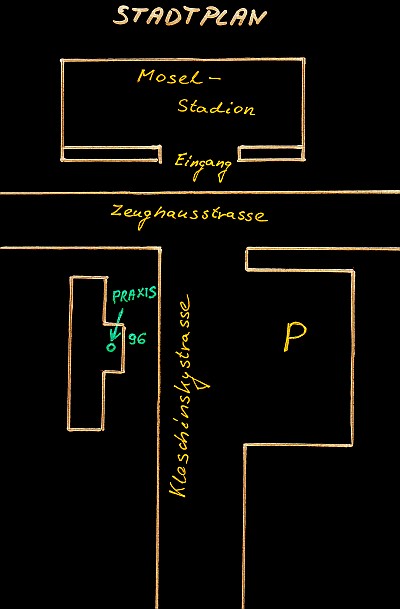 Meine Praxis befindet sich in der Kloschinskystr. 96 (gegenüber Moselstadion) in 54292 Trier.